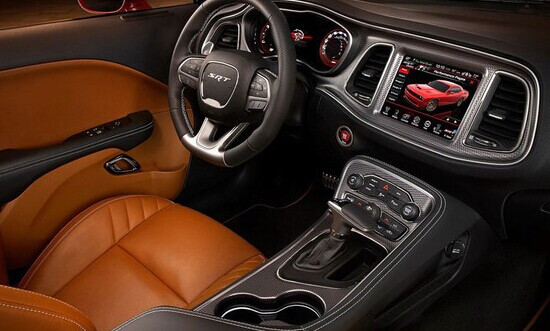 内饰部分,新车也基本沿用了普通版车型的设计,但运动气息更强。新车配备全新SRT专属方向盘,副驾驶侧出风口和座椅上的SRT徽章显示了新车的与众不同。并且,新款挑战者SRT Hellcat的仪表盘中央可以显示Hellcat的专属LOGO。