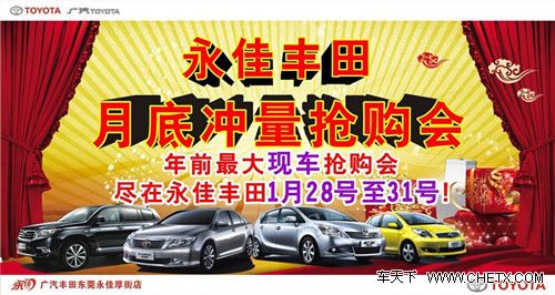 [导读] 新春献礼、惊喜不断,广汽丰田东莞永佳厚街店为冲刺春节前最后一个月底,现举行大型活动“月底冲量抢购会”。