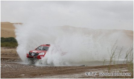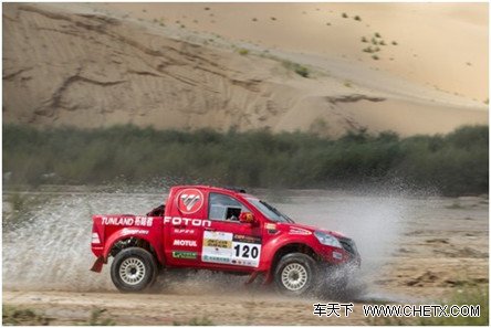 据了解,前几日赛段大多在内蒙古杭锦旗沙漠区内进行,路况多为硬土路和砂石路。特别是由于受冷空气和暖湿气流共同影响,出现降雨降温天气,赛中多次穿过水面,无形中给车手增加了难度。但是,福田汽车东方赛车队依然穿越重重考验,穿山越水,勇往无前,最终以优异的成绩完成了前几个赛段的比赛。