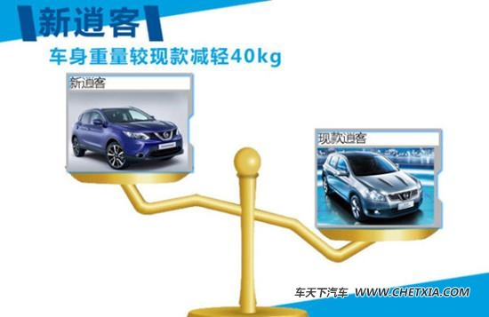 轻量化车身设计正成为时下汽车领域的整体趋势,东风日产主打车型新逍客也顺应这一潮流,车身重量较现款减轻40kg,这一数据对于其燃油经济性的提升起到促进作用,在动力方面,新逍客将有望与新奇骏共享动力总成,搭载2.0L和2.5L两款自然吸气式发动机。