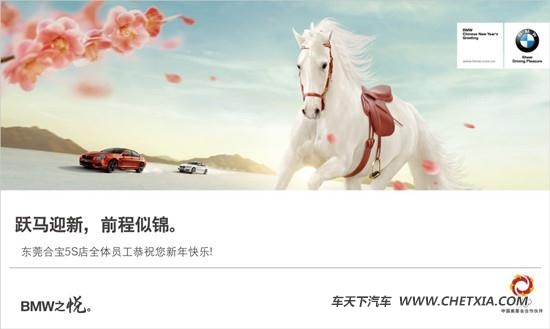 【车天下 东莞车市】万马奔腾贺新年,龙马精神悦其中。在2014年初始之际,东莞合宝为广大客户献上优厚礼遇,新年浓情礼包、超低金融方案等饕餮大餐助您赢得新年开门红。1月31日前购买,还可获赠BMW原装太阳膜及贴膜服务!详询:13424774799。
