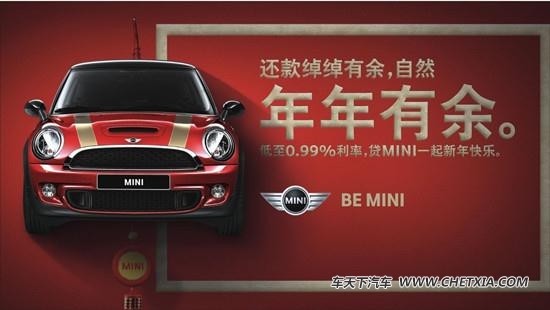 【车天下 东莞车市】为还贷款不遗余力,哪还有心情过春节。用金融方案告别年终赤字,和MINI(报价 参数 图片 论坛)一起过新年吧。即日起至3月31日,东莞合宝MINI为财神带路,为大家带来轻松过年的好办法! 让你告别年终贷款压力,还款绰绰有余,自然年年有余。渴望拥有一部MINI ?可没人拦着你!