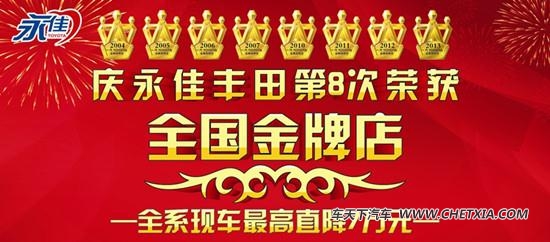 金牌一重礼:庆永佳丰田第8次荣获全国金牌店!全系现车钜惠高达7万;