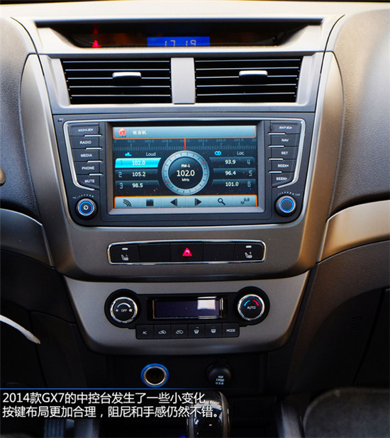 相对于车头的造型变化,2014款GX7在尾部的改动与老款车型相比不是很大。整体造型没有改变,但新车增加了一组LED立柱尾灯组,将旧款车后风挡两侧的黑色区域有效利用。加大的尾灯组提升了安全性,也使得新车尾部给人比老款更加大方沉稳。旧款车顶上的天线不见了,2014款GX7全系改为隐藏式天线,更美观的同时,洗车也方便了不少。