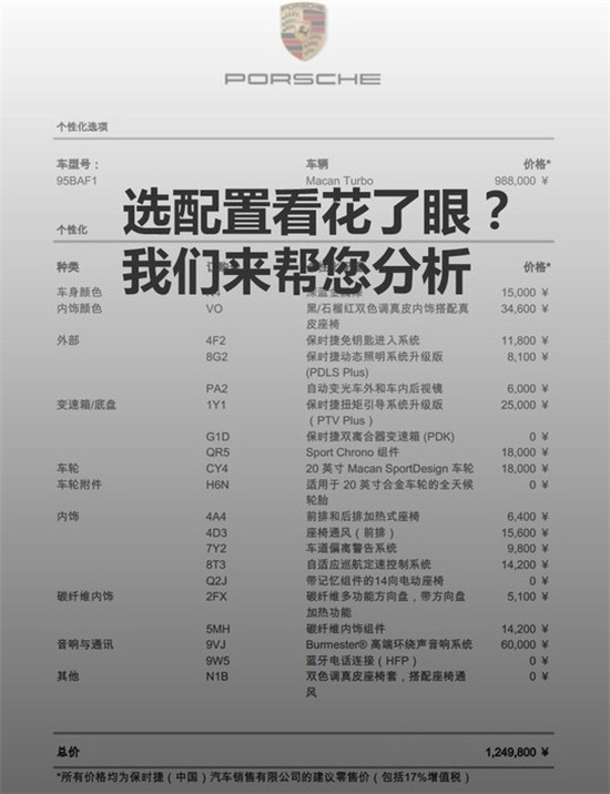 如果经销商告诉您只有这两个配置有现车,且您确实急于想把Macan开回家的话,那确实只能接受。如果您还能等待,那么就定制吧。
