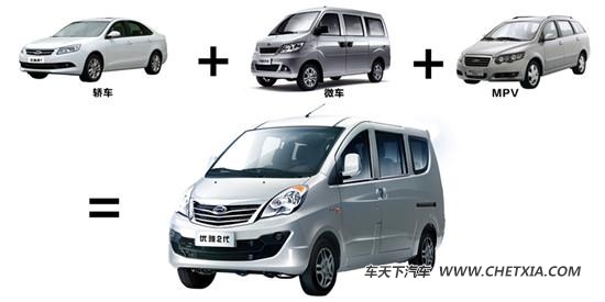 【车天下 东莞车市】自去年7月,“前驱全能商务车”开瑞优雅2代(报价 参数 图片 论坛)登陆市场后,以其“前置前驱”的特有优势,赢得了大批用户的青睐。笔者从市场了解到,优雅2代令不少中小创业者实现了事业与生活的双升级,原因在于其集轿车的舒适性、微车的实用性和MPV多功能性于一身,一车顶三车!
