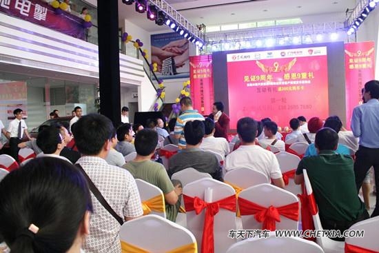 【车天下 东莞车市】5月13日在东莞兴隆举行的“见证9周年 感恩9重礼—东莞兴隆汽贸9周年庆典暨客户赏车团购会”圆满结束。现场精彩的表演博得阵阵喝彩,热辣的舞蹈、精彩的魔术,激情滂湃的乐队把现场气氛推向了高潮。当然让客户最激动兴奋的必须是我们的抽奖礼的奖品(三开门电冰箱、50寸液晶大电视)。活动期间乐享9重好礼,特惠礼、礼上礼、回馈礼、订车礼、进店礼、签售礼、砸金礼、互动礼、抽奖礼等好礼,还为各位顾客奉上可口的点心和真诚热情的服务,让新老顾客都度过一个满载而归的下午。