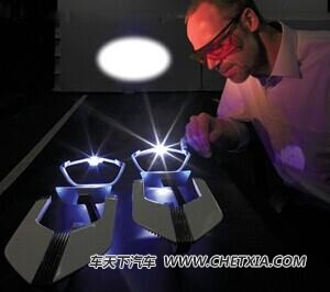 激光大灯另一个显著优势是在发光效率方面,比如一般的LED照明灯的发光效率可以达到每瓦100流明左右,那么激光二极管元件可以达到每瓦170流明左右,这意味着,当满足同样照明条件时,使用激光大灯的能耗不到LED大灯的60%,进一步减少了能量消耗,也更加符合未来汽车的节能环保趋势。同LED一样,激光二极管也只能发射单色激光,需要通过多个单色激光源合成,或者使激光通过石英等透明介质,导致光谱展宽形成白光辐射。宝马则使用了白光LED普遍采用的方法——蓝色单色光+荧光滤镜来制造白光。