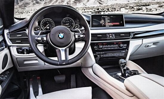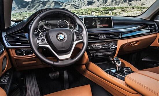 在车厢内部,2015款宝马X6车型的内饰用料更加高档,整车配置十分丰富。2015款宝马X6车型配备了运动型方向盘、真皮座椅、带有10.25寸屏幕的iDrive多媒体信息系统、双区温控空调等配置。该全新车型的行李箱空间最大为1525升,十分宽敞。2015款宝马X6车型使用了多种电子驾驶辅助系统,其中包括自适应巡航系统、拥挤交通辅助驾驶系统等,可以帮助驾驶员更轻松的驾驶汽车。