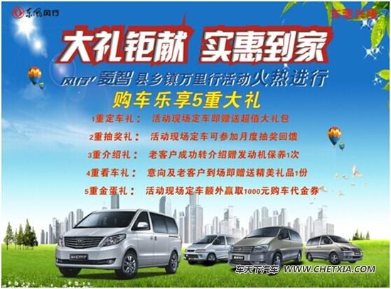【车天下 东莞车市】有优惠啦!东莞兴隆风行4S店6月21日将举办“大礼钜献 实惠到家----风行菱智(报价 参数 图片 论坛)县乡镇万里行”活动,活动期间购车享受5重大礼,还为广大朋友准备一系列的精彩表演,不买来现场参加活动的朋友我们也为你准备的精美的礼品, 风行菱智家族来到你家门前,为你送购车史上最优惠的价格。对风行菱智心动已久的广大朋友要抓住机会,参加我们的活动!