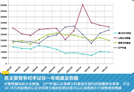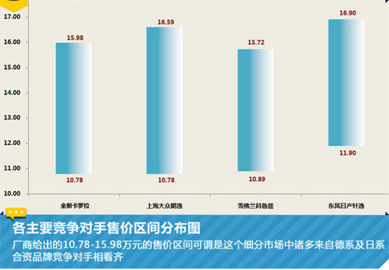 从产品定位来看,全新卡罗拉的竞争对手锁定在大众朗逸(报价 参数 图片 论坛)、雪佛兰科鲁兹(报价 参数 图片 论坛)以及日产轩逸(报价 参数 图片 论坛)车型。而相比第10代车型的12.38-16.08的售价来看,新车型最高降幅达到了1.6万元。放下身段,拉低售价也是一个十分明智的选择,让价格更接地气,这也使得全新卡罗拉在市场中显得更为抢眼。