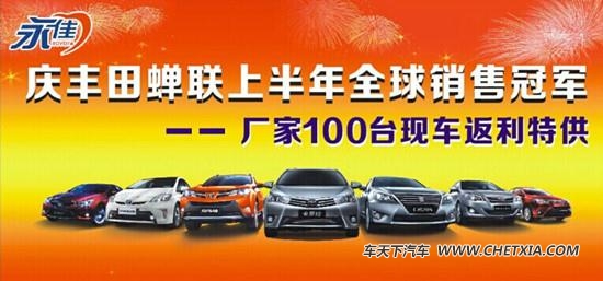 热烈庆祝丰田蝉联2014年上半年全球汽车销量冠军!金杯银杯不如口碑,销量之冠无需质疑!为感谢新老顾客一直以来的支持与信赖,石排永佳丰田特于8月9日(本周六)上午10:30开展大型团购惠!来店送好礼!厂家100台返利特供!全系钜惠高达8万!购车从“0”开始——0首付、0利率、0月供、1年0油费、3年保养0花费!置换新车更高达4000元(报价 参数 图片 论坛)补贴!定车赢油卡、保养劵、家电等神秘豪礼!100%中奖!报名热线:400-999-7248