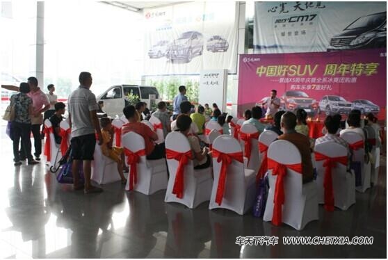 【车天下 东莞车市】2014年8月17日东莞兴隆风行汽贸将在寮步国际汽车城举办“中国好SUV 周年特享--景逸X5(报价 参数 图片 论坛)周年庆暨全系冰爽团购惠”活动在昨天已经拉下帷幕,活动当天风行全系购车乐享7重大礼,精美礼品和夏日必备大奖轻松拿走!让我们一起走进当天的现场看一看!