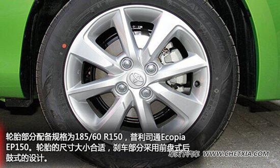 轮胎部分配备规格为185/60 R150,普利司通Ecopia EP150。轮胎的尺寸大小合适,刹车部分采用前盘式后鼓式的设计,这似乎没有达到AO+应有的水准,不过在小型车的配备上比比皆是,不足为奇。