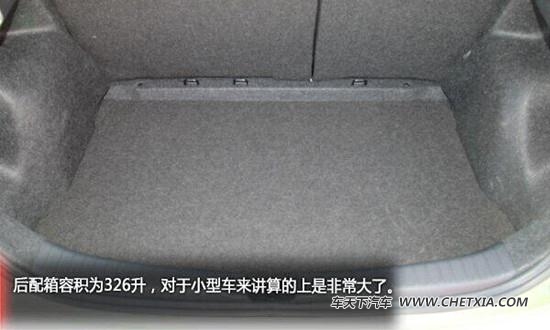 后配箱容积为326升,对于小型车来讲算的上是非常大了。座椅折叠后的空间非常平整,撞两套高尔夫(报价 参数 图片 论坛)球杆不再话下。