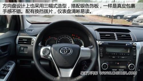 骏瑞车型相比普通版本抛弃了四幅方向盘,而采用了运动气息浓郁三幅式方向盘,并采用了银色饰板,银黑经典的配色让这款车的运动感犹然而生;再有就是骏瑞车型则增加了换挡拨片,这也是凯美瑞运动版车型的独享配置。真皮包裹的方向盘手感很不错,并且仪表盘清晰易读,银色表底金属感强烈,凸显速度运动宗旨。