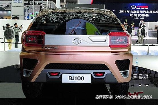 其实北汽J100概念车早在今年的北京车展中就正式亮相了,新车个性化的前脸造型酷似Jeep大切诺基(报价 参数 图片 论坛),同样采用了方形孔式的前进气格栅设计,不过BJ100犀利的大灯组更加醒目,同时还与格栅形成了一体式造型,而前保险杠左右两边硕大的倒梯形进气口也无疑增加了该车的霸气感,并提升了整车前脸的视觉冲击力。与此同时,车尾的整体造型也简洁干练,整体造型与前脸相呼应,同样方形的大尺寸尾灯和左右对称的装饰孔和细长的红色雾灯等,这些均大幅提升了该车的辨识度。