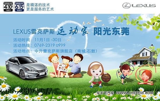 【车天下东莞讯】深秋季节,冬天即将到来之际,做好车辆保养,保持良好车况极为重要。为答谢新老客户对东莞中升雷克萨斯的厚爱与支持,我店将开展【中升“阳光(报价 参数 图片 论坛)东莞.运动家”售后特惠活动】为您精心准备了多重关爱礼包,确保您的优异车况,让您尽享雷克萨斯幸福人生!