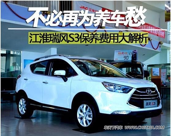 【车天下东莞讯】江淮瑞风S3(报价 参数 图片 论坛)以6.58-8.48万元(报价 参数 图片 论坛)的高性价比定价正式上市。在目前小型SUV的市场格局中,如此定价已经打破了消费者对这个级别车型售价的正常认知范围,但是买车并不是一次性消费,消费者除了对售价比较敏感之外,也非常看重购车之后的持续消费。而除了必要的油钱与保险费之外,与产品最直接相关的就是保养费用了。