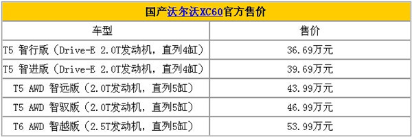 11月9日,沃尔沃XC60(报价 参数 图片 论坛)国产版在昆明宣布正式上市,官方售价36.69-53.99万元(报价 参数 图片 论坛)。此次上市车型共分为五款,将搭载2.0L T5 Drive-E发动机、2.0L T5直列五缸发动机、2.5L T6直列五缸发动机三种动力系统。