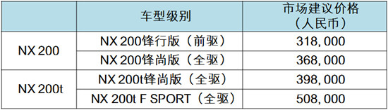 汽油发动机车型:NX 200和NX 200t