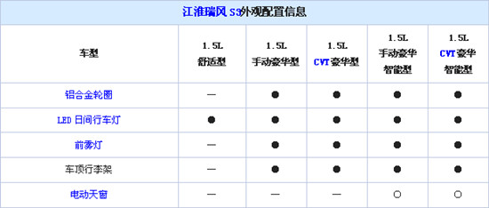 外观配置方面,瑞风S3全新标配LED日间行车,除了最低配车型,新车还配备有铝合金轮圈、前雾灯和车顶行李架。而高配两款车型还可选装电动天窗。