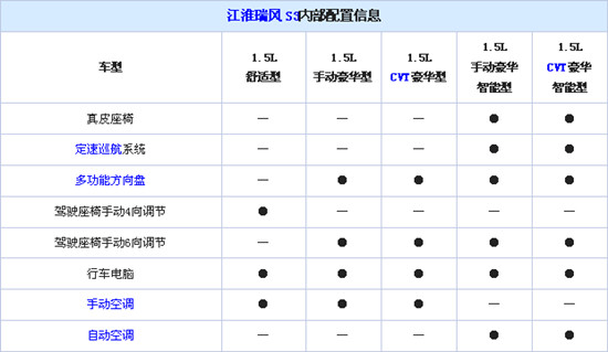 内部配置方面,新车标配行车电脑,除最低配车型配备有驾驶座椅手动4向调节外,其余车型均配备多功能方向盘和驾驶座椅手动6向调节。此外,高配两款车型还配备了真皮座椅、定速巡航和自动空调。