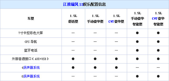 娱乐系统配置方面,新车标配外部音源接口(AUX+USB),除了1.5L舒适型、1.5L手动豪华型和1.5L自动豪华型三款车型配备四扬声器外,高配两款车型均配备有6扬声器、7寸中控彩色大屏、GPS导航和蓝牙电话。