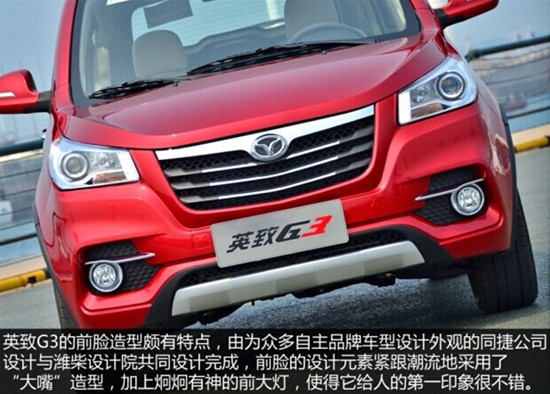 英致G3的外观设计由潍柴设计院与同捷公司共同完成,同捷是国内首屈一指的汽车设计团队,长城、江淮等众多自主品牌的很多车型都出自它手,所以英致G3的外观看起来也是很精神的。