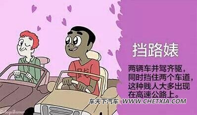 两辆车并驾齐驱,同时挡住两个车道,这种人,大多数出现在高速公路上。