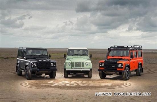 【车天下汽车网讯】日前,路虎汽车发布了三款卫士(报价 参数 图片 论坛)特别版车型的官方图片,根据路虎的产品计划,本次推出的车型或将成为现款卫士的终结版本。据悉,这三款车型共限量生产1080台,并将于4月份正式推出。