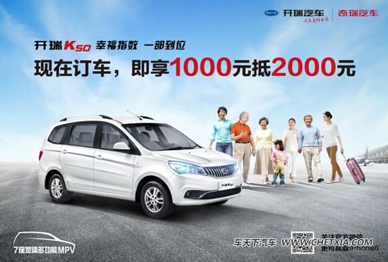 【车天下东莞讯】据开瑞汽车官方最新消息,开瑞K50(报价 参数 图片 论坛)于1月15日正式开始对全国消费者预售,在全国范围内启动了主题为“开瑞K5(报价 参数 图片 论坛)0幸福驾到 订车即享1000抵2000 不试不卖”的预售活动。