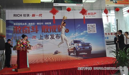 【车天下东莞讯】2015年3月15日下午,以“敢奋斗 敢成就”郑州日产锐骐·新一代皮卡上市发布会于东莞市汇展汽车隆重举行,活动当天到场的新老客户和广大媒体朋友共同鉴证了锐骐新一代的新车发布。