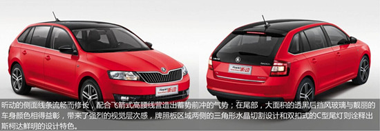 作为一款个性十足的越级行旅车,Rapid Spaceback在2014年摘得红点设计奖。它长头短尾的运动造型、大掀背样式的尾门以及极富特色的黑色套件颇受年轻消费者欢迎。