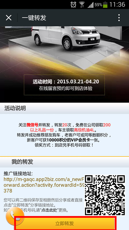 然后就可以分享到各个不同的渠道啦!转发有礼,赶紧转起来吧