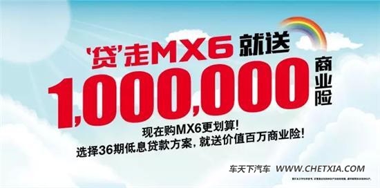 凡是在活动期间以36期金融信贷形势购买郑州日产东风风度MX6(报价 参数 图片 论坛)车型,不仅可以享受利率低至7.88%的超值优惠,还可以获得100万元的第三责任险。低息购车还赚价值100万元的保险,不到3万元的首付就能实现有车有保险,这才是“买买买”的真正快感。