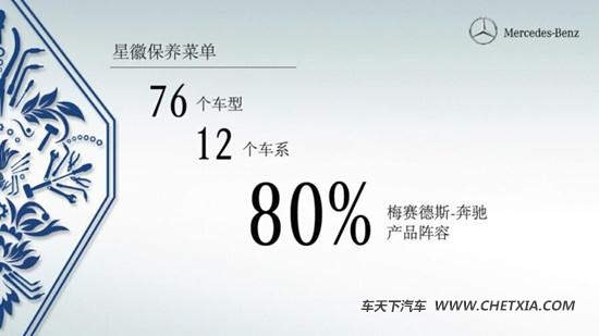 · 从4月1日起,梅赛德斯-奔驰推出了星徽保养菜单扩展版,增加了26个新车型,比如全新C级车和GLA,使总体覆盖范围扩大至12个车系的76个车型,囊括梅赛德斯-奔驰总体产品阵容的80%。