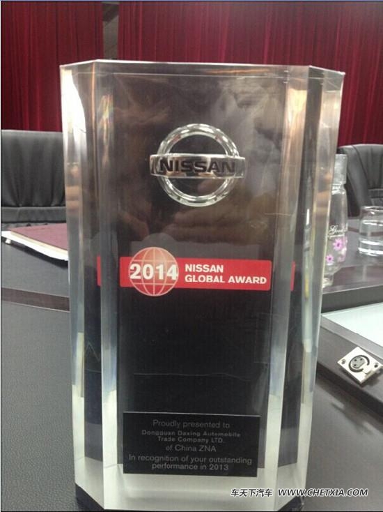 据悉,NISSAN全球大奖是日产经销商最高奖项,获此奖项是全球日产经销商梦寐以求的,2014年,共有50多个国家和地区20000多家专营店参与评选,中国有600多家专营店参与,仅仅10家获奖。大兴汽车集团东莞祥兴作为华南地区郑州日产经销商,在2014年以销量6000台骄人的成绩获得了全球十佳经销商奖项!