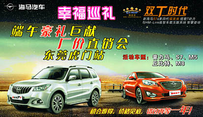 [导读] 活动时间:2015年6月20日-21日(两天,下午15:00-晚上9:30) 活动地点:虎门沃尔玛广场 还在为海马车展上没买到价格最优,配置最好的心仪爱车而懊恼吗? 还在为当时的犹豫与特价