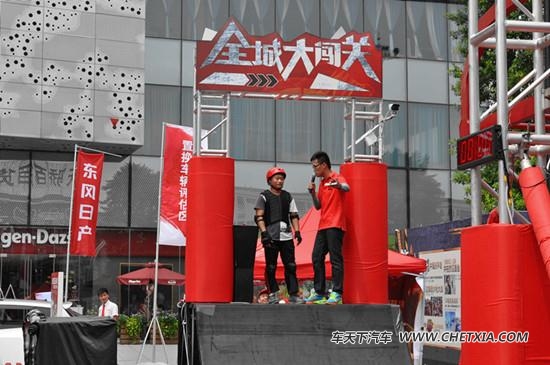 “全城大闯关”,是由东风日产为年轻人量身定制的八大游戏关卡,每一道关卡都由专业设计的运动展具组成,不仅形象地模拟出日产轿车的性能,让选手能直观地在关卡中感受到东风日产的汽车特点,更能全面激活你的身体能量,挑战体能、力量、速度与极限,挖掘连你自己也不知道的潜在力量。