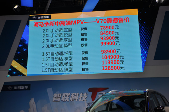 [导读] 4月30日,海马V70在广东国际展览中心隆重上市,海马V70共推出8款车型,官方指导价为7.89万—12.89万。