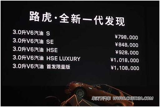 2017年3月2日,路虎全新一代发现(报价 参数 图片 论坛)于武汉正式上市,新车共推出S、SE、HSE、HSE LUXURY及首发限量版共5款车型,售价区间为79.8万-110.8万。目前东莞常平惠通陆华全面接受预订。