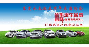 东莞永泰起亚周年庆团购会 最高直将4万 车天下汽车网 发表于:2014-05-12 11:40 钜惠4万! 不等啦! 小伙伴们快来东莞永泰起亚抢车吧! 在5月25日,东莞永泰起亚周年庆团购活动将隆重举行,起亚K系、福瑞迪、秀尔、智跑、狮跑等热销车型,最高钜惠4万,现场订车即有机会抽取豪礼,50寸液晶电视、冰箱、洗衣机等万元家电等着您。 -